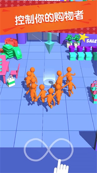在每一个关卡中,地上都会散落着大量商品。你要操控小人持续聚集人群,从而迅速收集关卡内的全部商品。轻松欢快的背景音效,能有效释放压力。闲暇之时玩这款游戏,是打发时间的不错选择。