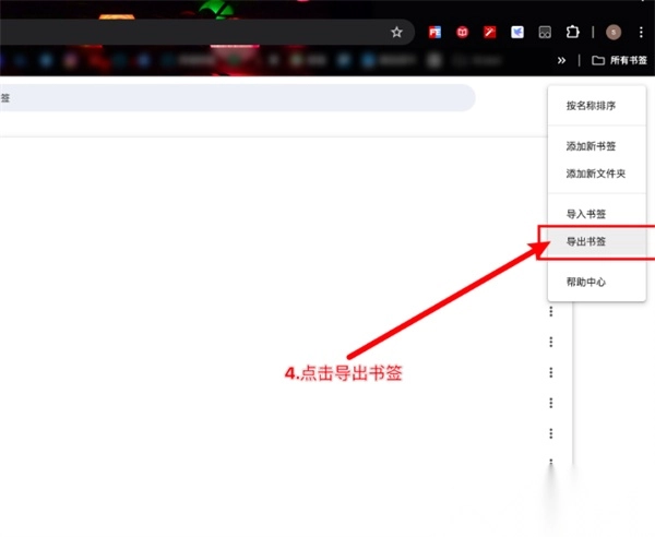 2. 轻点书签页面的3个点【更多】,接着选择【导出书签】。