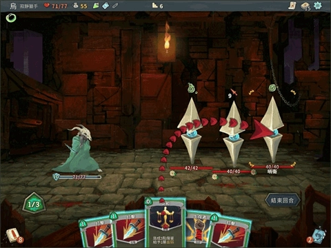 你可以根据自己与怪物的状态决定是否出牌、出什么牌以及出牌的顺序。当你出完牌时,点击结束回合按钮,就轮到怪物行动了。