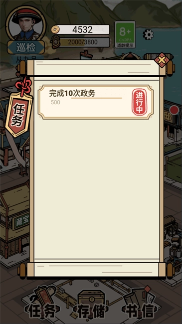 1、下载安装并进入游戏,先巡检,从了解平民百姓开始做起