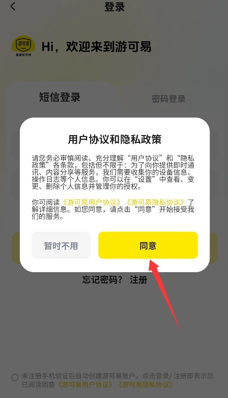 1、初次使用需完整阅读平台服务条款与隐私政策,确认后点击同意按钮进入应用。