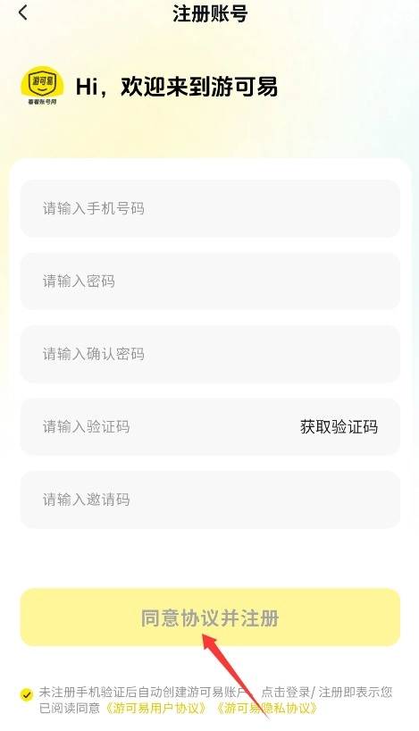 2、填写手机号获取验证码,设置登录密码并输入邀请码后,勾选协议完成注册。