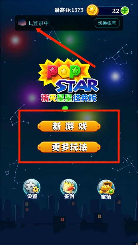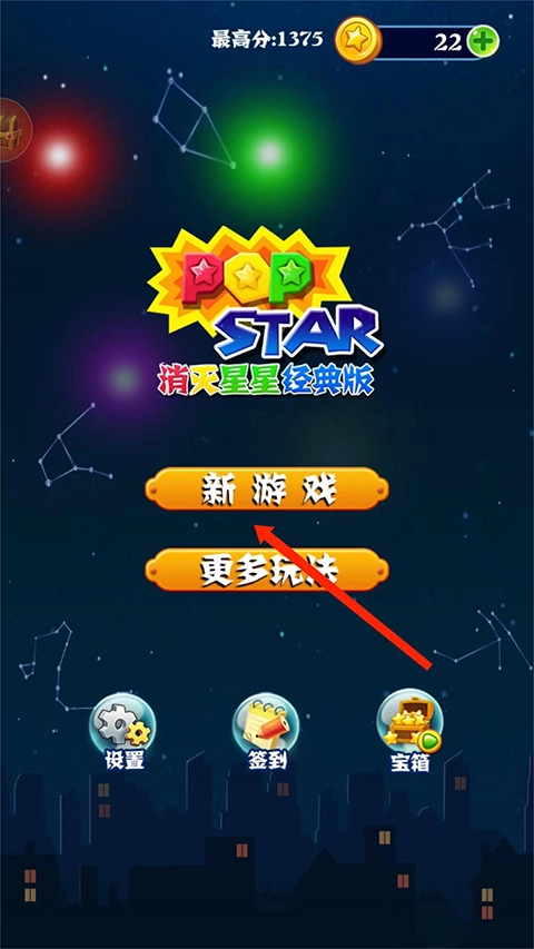 1、打开消灭星星经典旧版游戏,进入游戏主界面,选择【新游戏】选项,