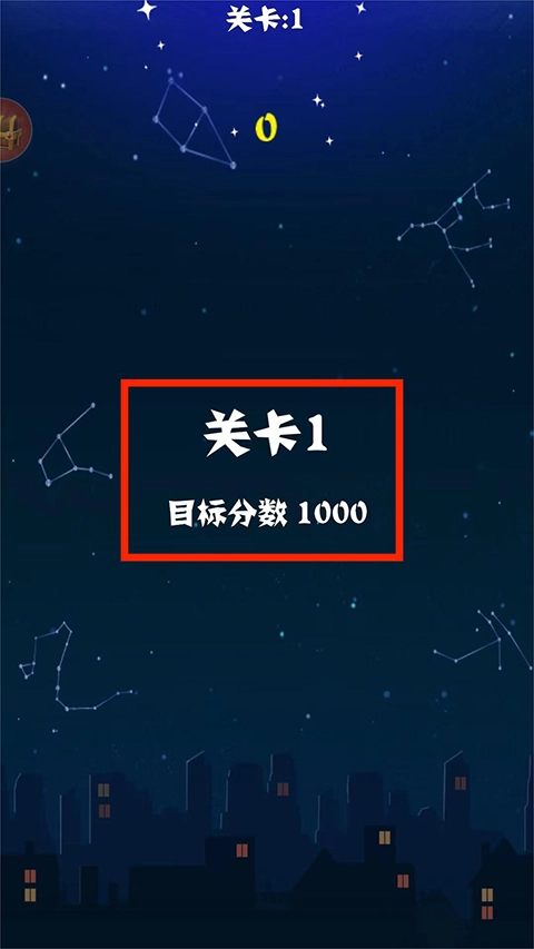 2、转入新界面,显示【关卡1】和【目标分数1000】,