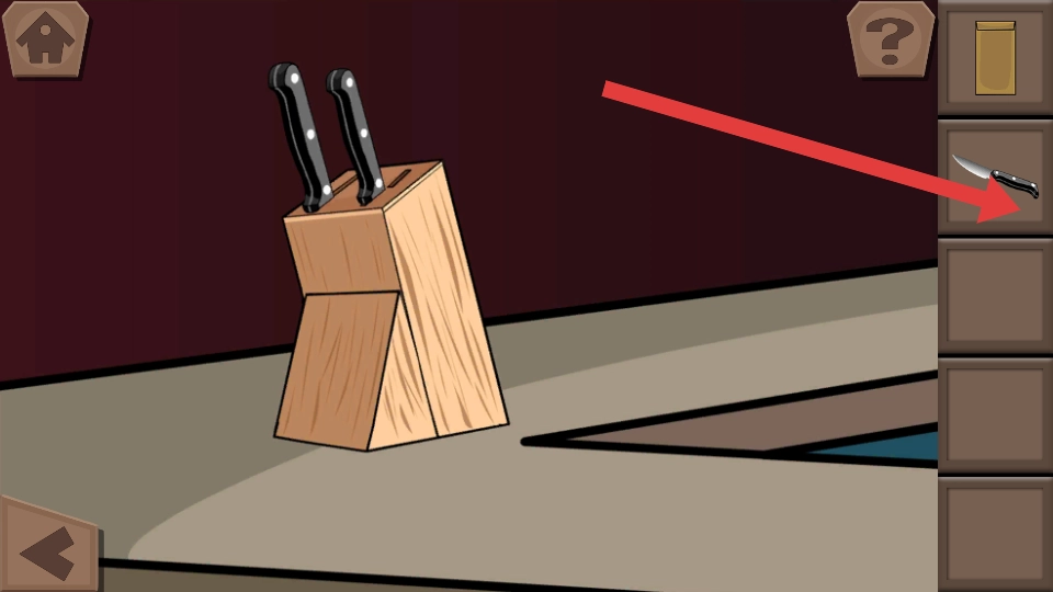 3、解刀具,观察刀具架缺口,尝试组合刀具或用线索匹配,触发隐藏的机关,拿到道具。