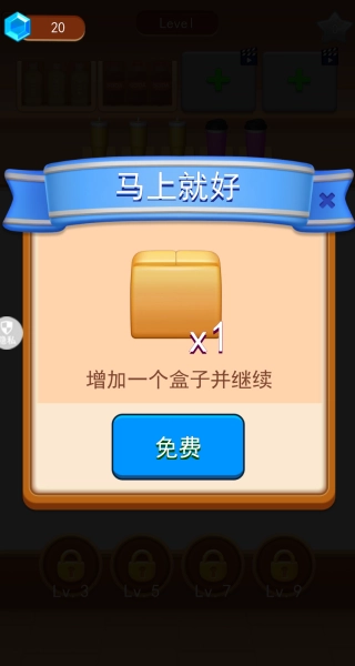 4、当你玩的时候操作界面会弹出一个指示,增加一个盒子,来帮助你收纳。
