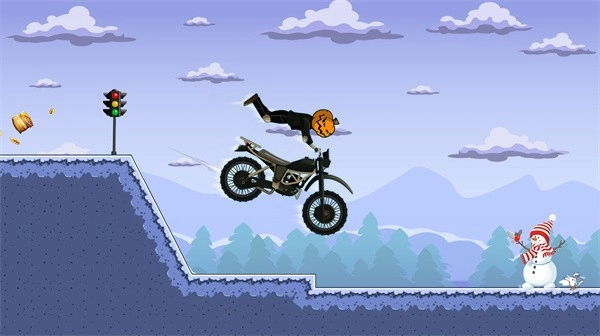 1、玩家需要操控自行车在各种复杂地形中完成跳跃、翻转、旋转等多种特技动作,积累分数和奖励;