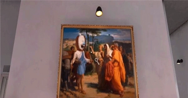 5、留意博物馆内各处纸牌人的指示,通过仔细观察,从中找出密码锁的密码。