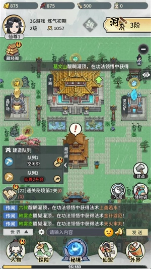 4、于洞府之中点击“建造”选项,便能修建各类不同的建筑,每一种建筑都会为你带来不一样的效果。