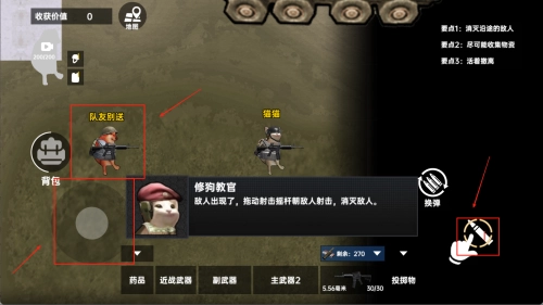 3、我们需要移动人物收集物资,以及击败敌人,最后成功撤离。