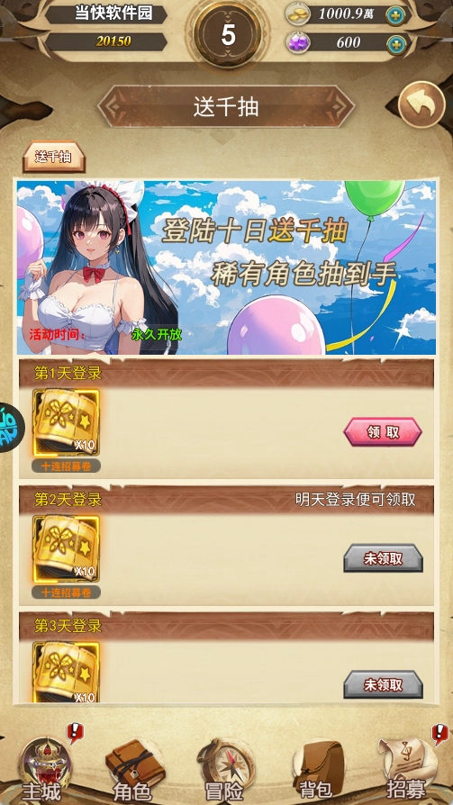 5、送1000连抽卡好礼