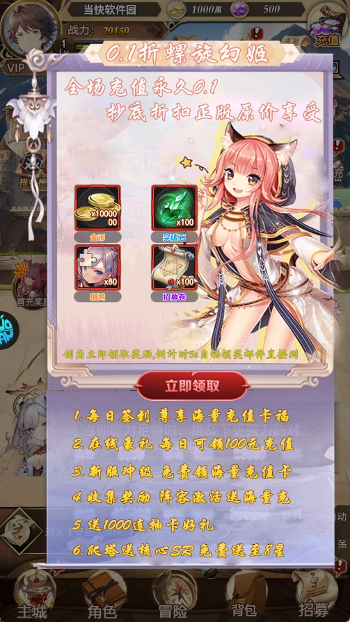 4、游戏推出超高性价比的充值返利与福利礼包。特别是在0.1折螺旋幻姬活动里,玩家可畅享极为优惠的游戏内容及资源获取途径,助力游戏进程更为顺畅。