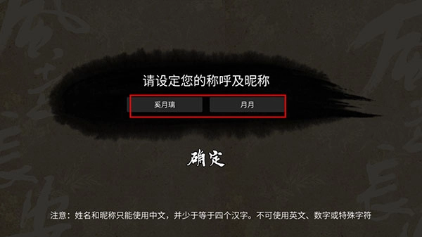 1、进入游戏后为自己取一个好听的名字,选择确定开始游戏。