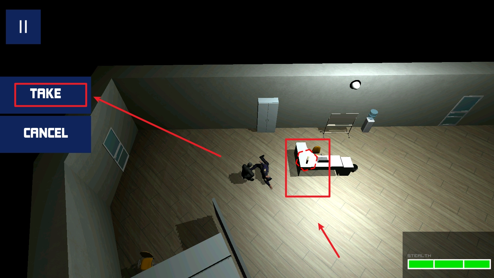 3、击倒守卫后必须及时隐藏尸体,选择储物柜或者阴暗角落都是不错的选择,避免被其他守卫发现呀。