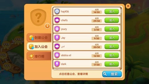 2、此时,你将看到一个公会列表,里面有你可以加入的各个公会。