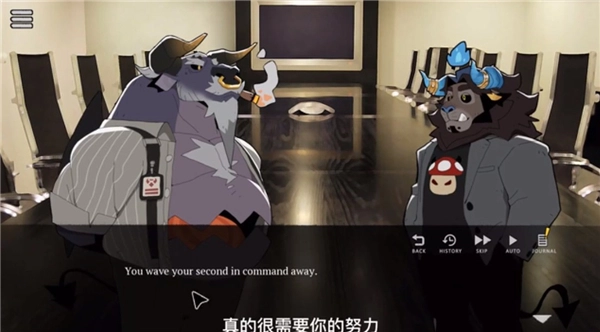 4、走进会议室,与诸多身份不明的角色展开交谈。这些角色的立绘在前期无法查看,后期会逐个解锁。