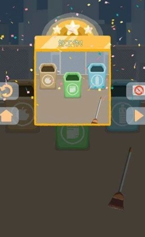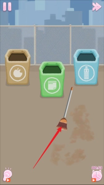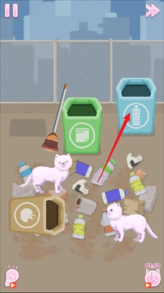 2、进入第一关后,玩家需要将散落的垃圾放入正确的垃圾桶中。