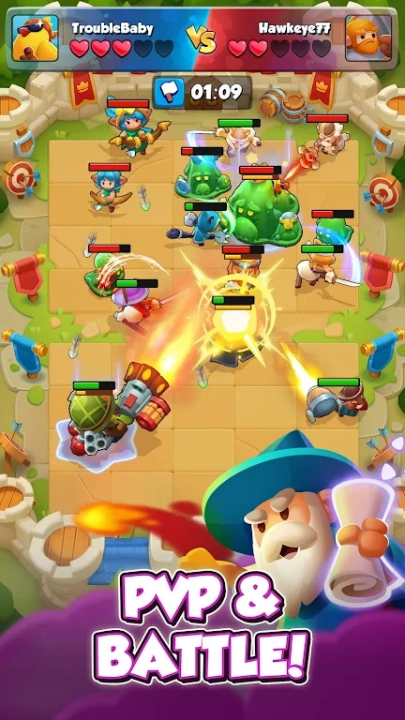 步入《城堡决斗》的奇幻天地!于这款卡牌策略游戏里,每场塔防之战皆充斥着智慧的博弈,游戏机制满是意外的曲折与无尽的可能。从卡牌构建到城堡守护——这是一款策略游戏,唯有聪慧且果敢之人方能取胜!此游戏聚焦于PvP模式——多人策略游戏中,史诗级战斗正翘首以盼。实时PvP模式使你能够与经验各异的其他玩家一决高下。这对卡牌构筑、战略思考以及战术把控而言,皆是一场实打实的挑战,唯有最强者方可登上荣耀之巅。征服全新竞技场,实现晋级并赢取丰厚奖赏!