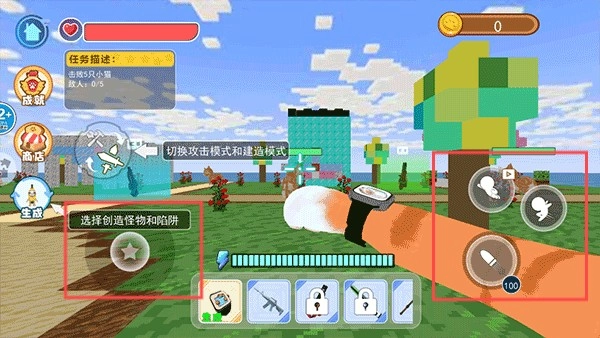 2、于沙盒模式里,借助左侧的【选择创造怪物和陷阱】按钮以及右侧的操作按钮来开展创作。玩家能够在沙盒世界中自由地创建各类建筑。