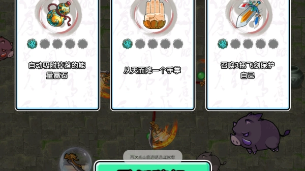 3.升级之后每次都能够从随机三BUFF中选择一个BUFF,来提升角色的战斗能力。