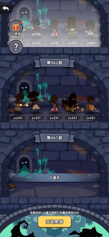 一旦停止主线战斗或心魔之塔的挑战,系统便会启动【休憩光环】机制。经过一段时间的休息,该机制能够大幅降低后续挑战的难度!