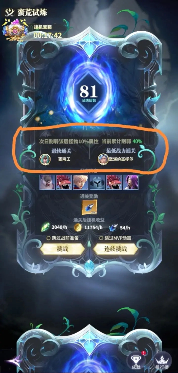 2,等级主要与【蛮荒试炼】,也就是我们所说的【爬塔】相关。爬的层数越高,获取的经验就越多。如下图所示,当前层数每小时能够获得2040经验。