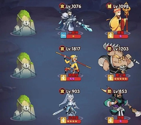 3、游戏提供供9个阵位。玩家可以很快解锁前六个,而之后的阵位解锁则需要玩家闯过一定数量的关卡才能解锁。