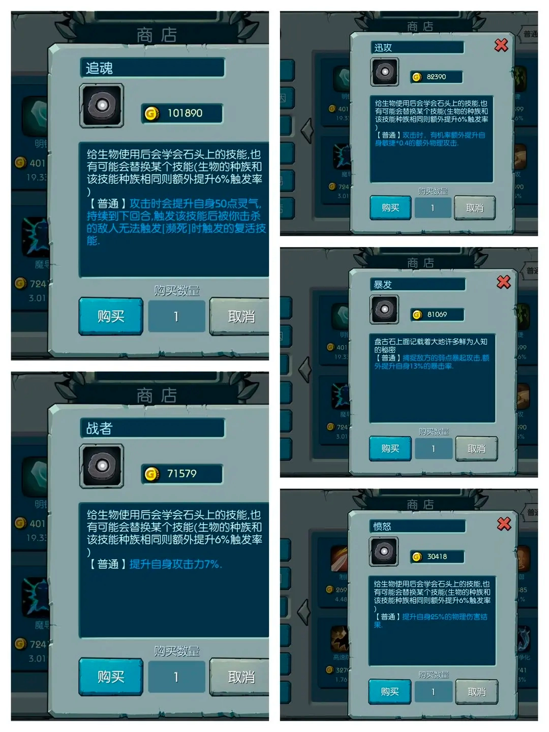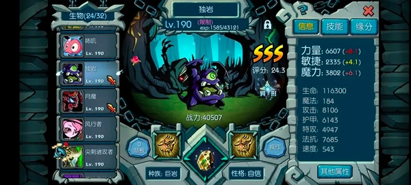 一个是增加血量,另一个是提升护甲,这情况不就跟等着挨揍没啥两样嘛。直接打上岩族专属的增加防御与血量的技能就好啦。这跟我花了一千多钻石买的独眼没什么差别,而且还没有回血效果。