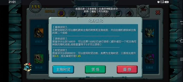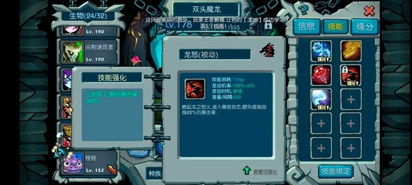 重修转成其他主角后,这四个技能中仅有前两个会变化,后两个不会改变。要是转成巨岩,鉴于前排大多是岩族,不妨考虑打个岩精。现在假定转成龙族,那么可以打个龙怒,龙怒能够通过盘古石开出来。