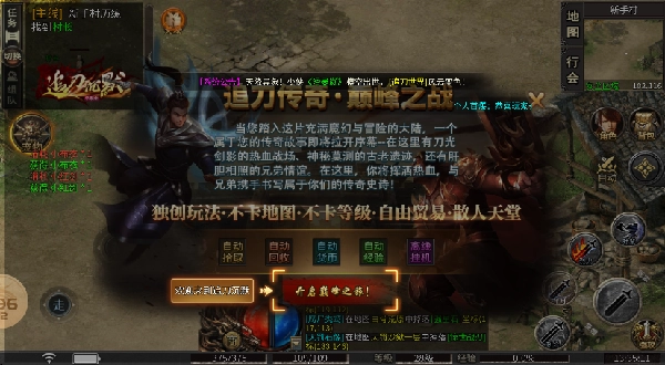 追刀沉默,这是一款以高爆率与经典战斗体验为核心亮点的传奇手游。它凭借“装备全靠打”以及“专注战斗快感”这两大特色,来吸引钟情于传统传奇风格的玩家群体。倘若你身为传奇游戏的忠实爱好者,一心追求那种简单直接的PK打宝乐趣,同时也不介意花费时间去逐步积累资源,那么不妨尝试体验一下这款游戏。