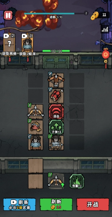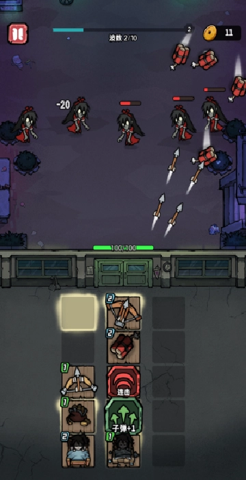 1、游戏采用关卡推进机制,每一关卡设有不同数量和类型的敌人进攻波次,难度随进度逐步提升。