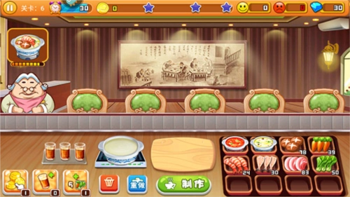 2、我们得把相应材料挪动一下,制作一份客人所需的火锅。材料放置妥当后,点击制作即可。要是做出来的并非客人想要的,客人或许会生气,还可能拒绝付钱。