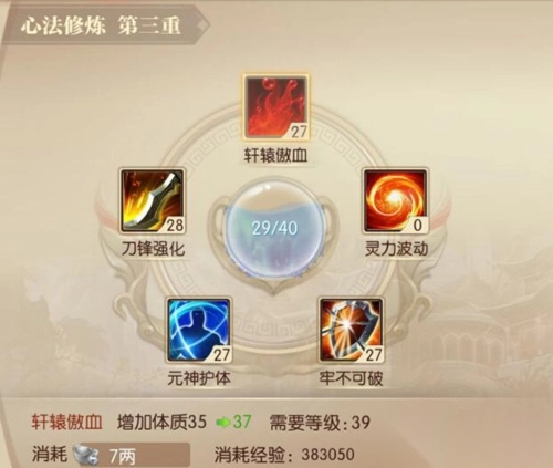 6、心法修炼同样是技能的一部分。玩家消耗一定经验,就能对心法进行升级。通过修炼心法,可提升自身攻击力、血量以及防御力。当心法升级到特定等级时,还能实现突破,并获取压制点数。玩家可依据自身装备的魔防、物防情况,或者按照个人喜好来分配这些点数。有时装备看似精良,却依旧无法取胜,其中的关键就在于此。