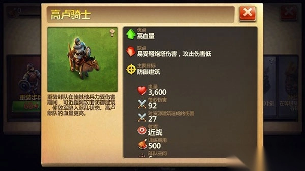 3、高卢:高卢民族以训练与友情为显著特点,能够缩短军队训练时间,并提升联盟兵力上限。凭借更迅速的军队训练速度和更为雄厚的兵力,高卢民族在前期战斗中优势尽显。此外,其固有部队高卢骑士具备高伤害与高血量的特性,在战斗中所向披靡。
