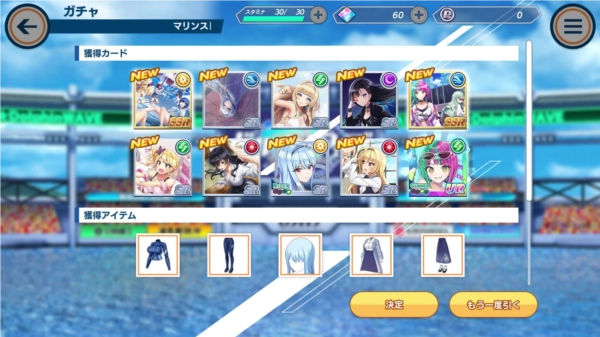 4、新手教学结束后的抽卡必定能获得1名UR海豚选手,而且可以无限制重抽。当刷出自己喜欢的UR与SSR角色,以及SSR至UR的回忆(装备)后,就能更愉快地开启游戏之旅。