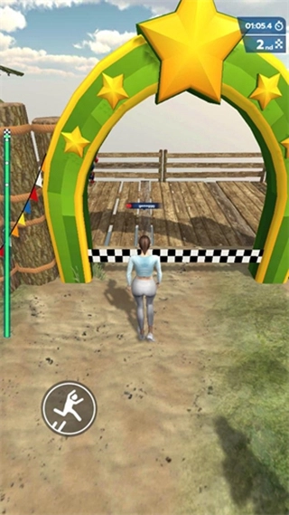 2.点击屏幕控制角色自由移动,在赛道上以最快的速度抵达终点。