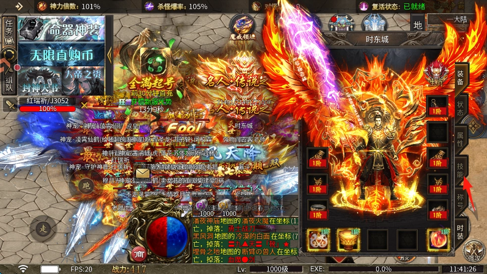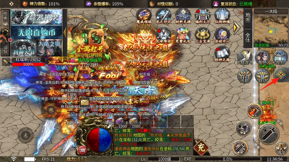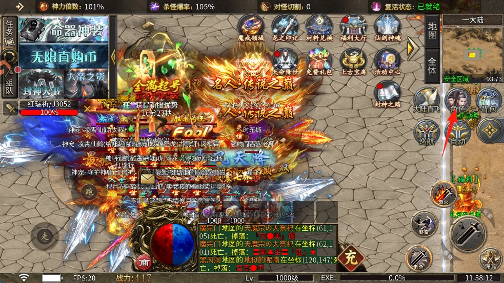 3、全新玩法上线:野外首领、跨服竞技大乱斗以及跨服BOSS。