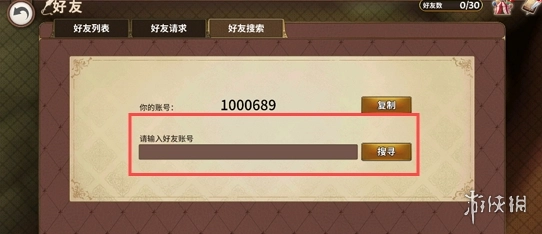 3、在搜索栏中输入对方的张角ID,进行检索操作并发送好友请求。