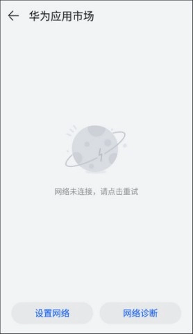 4、操作正确后会进入华为应用市场,此时处于断网状态,点击返回即可!