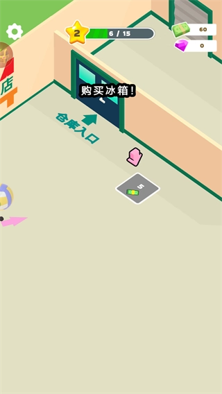 3、按照提示开始不断的建造商店里的设施,包括收银台、冰箱、仓库等;