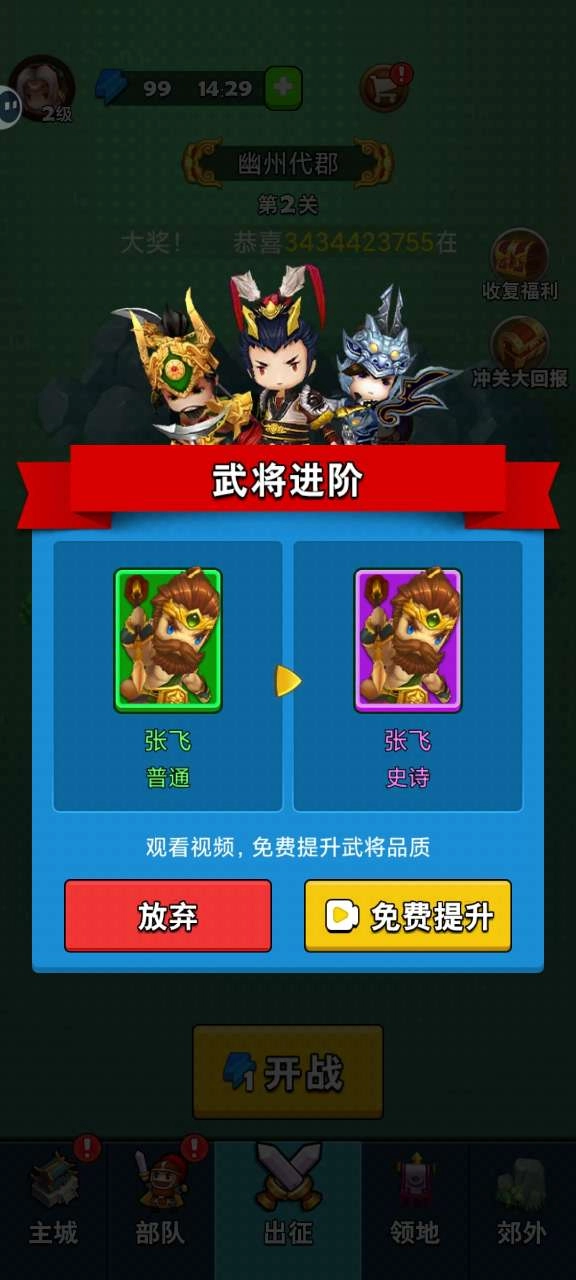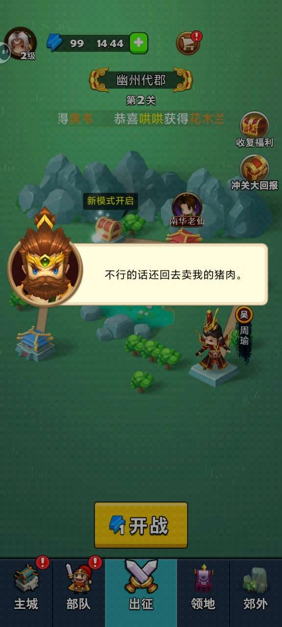 2. 武将获取无需抽卡,直接去战场上抓!这对运气不佳的玩家来说,简直就是天大的福音!从此妈妈再也不用担心我抽不到传奇卡啦!