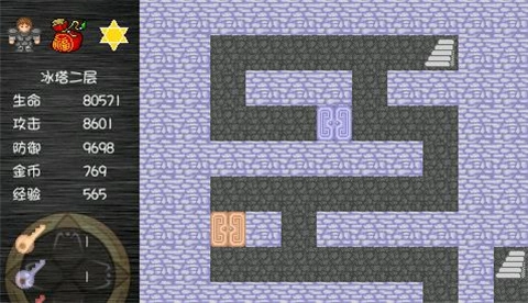 7、冰二区域:从冰二一路向冰三进发,行进过程中要留意暗墙。在此特别提醒,进入该区域后,不要先击杀紫骷髅,而是优先消灭史莱姆,获取宝石。当自身防御数值提升至652时,再去击杀紫骷髅。