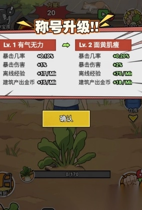 4. 称号升级:能够提高暴击率、暴击伤害,增加离线经验值的获取量以及建筑产出金币的数量。