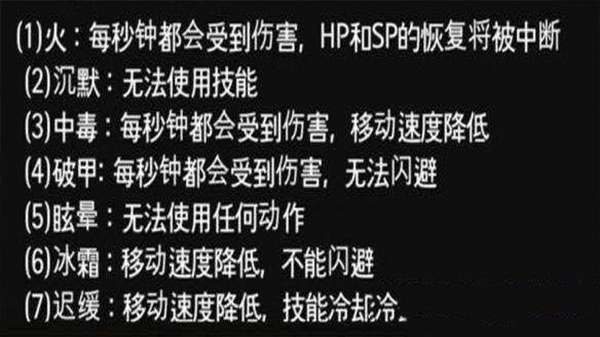 最后,战斗时玩家会遭遇各种异常状态。
