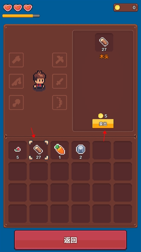 5、当你把所有物资都放进书包后,可选中其中一个物资,此时右边框框会出现“卖出”功能,反复点击“卖出”,你的金币数量便会持续增加。
