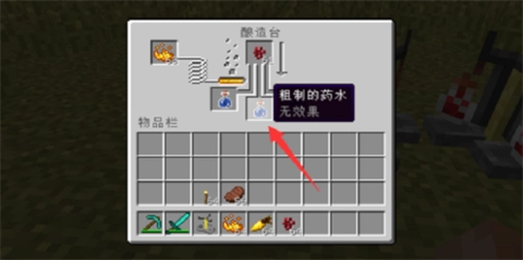 2、然后将烈焰粉和地狱疣放入到其中,再加上水瓶之后就会得到普通药水。