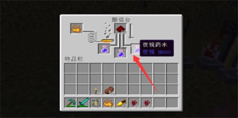 4、通过这种方式制作出的夜视药水时效仅有三分钟,若想延长时间,可以用红石替换金萝卜来制作,如此就能达到8分钟的效果。