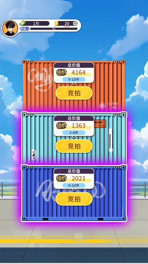 《集装箱模拟器》,这是一款别具一格的模拟经营游戏,在游戏里,你能满世界购置集装箱,每次参与拍卖都仿佛开启盲盒,充满未知与惊喜。玩家要扮演一位眼光独到的商人,去探寻那些隐藏在传闻中的珍贵宝物。在此过程中,你会与来自世界各地形形色色的商人展开竞拍博弈,每一次竞价都充满了不确定性。不仅如此,你还能够借助市场售卖、地区展览等方式来积累财富。而丰富的员工系统更是一大亮点,它能让你轻松解放双手,迅速搭建起属于自己的商业帝国!还在等什么?快来《集装箱模拟器》开启专属于你的财富之旅吧!