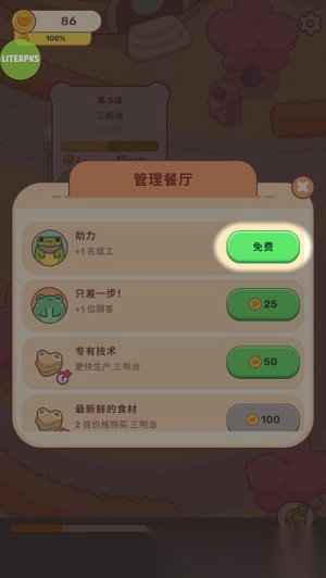 3. 采用快节奏运营模式,你的青蛙速度奇快无比,能让客人们都十分满意。