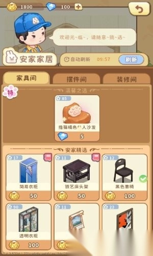 7)设计完成后,前往商店购买所需的家居物品,准备布置房间。